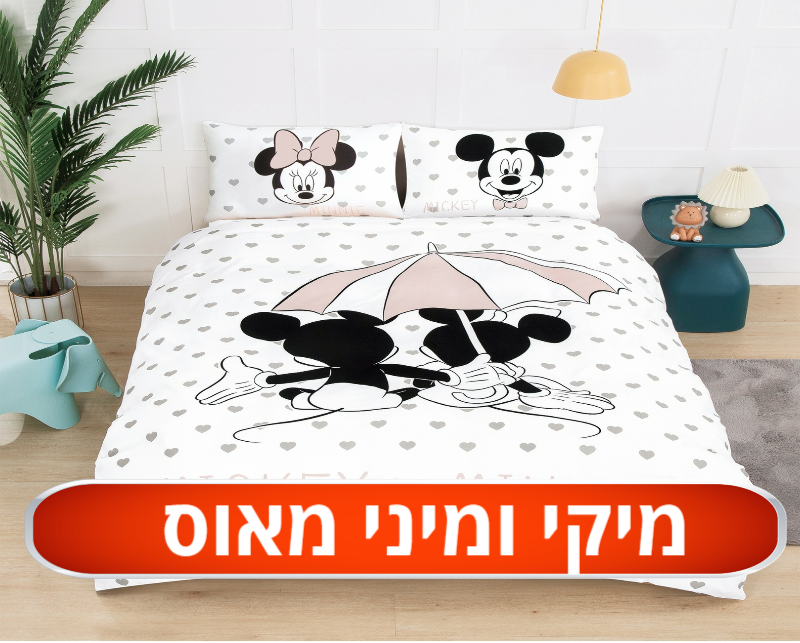 מצעים למיטה זוגית 100% כותנה מיקי ומיני מאוס - דגם 777710