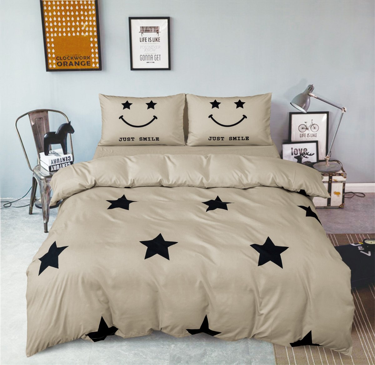 סט מצעים למיטה זוגית 160/200 דגם כוכבים - 222284